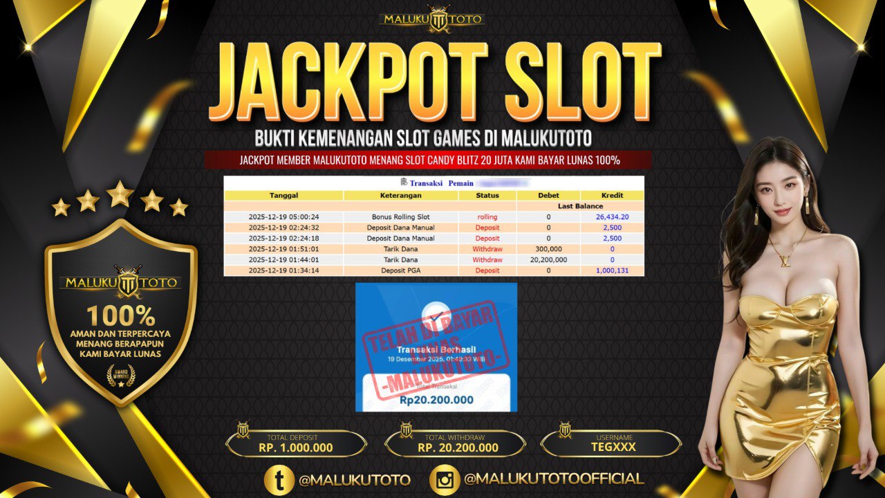 Selamat kepada User id : TEG** Telah berhasil mendapatkan kemenangan besar pada permainan SLOT CANDY BLITZ kemenangan Sebesar Rp. 20.200.000, Setelah mengisi formulir withdraw dengan kurung waktu hanya 3 – 5 menit pihak malukutoto sudah melakukan transfer kepada pemilik Userid dan dana sudah dapat di cairkan oleh pemenang. Bukti pembayaran yang kami berikan merupakan bukti pembayaran yang SAH / VALID yang langung di dapatkan melaui tanda transfer transaksi dari Bank yang di tuju.