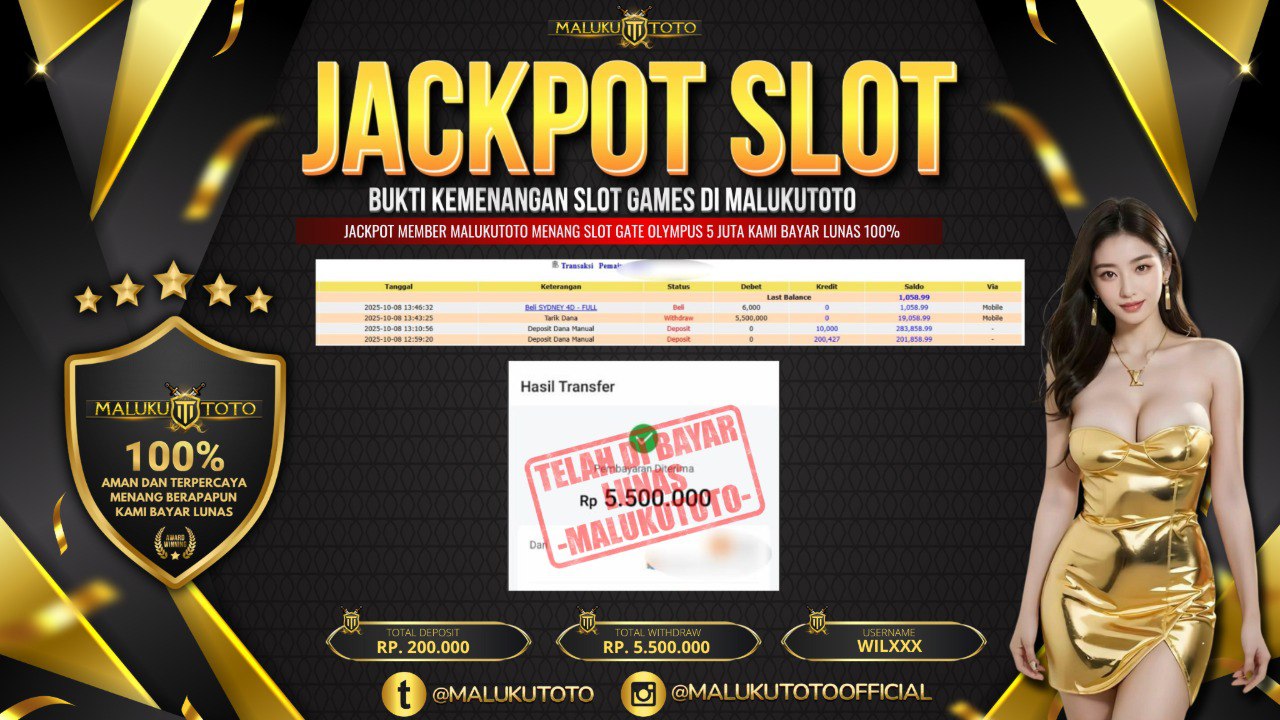 Bandar togel MALUKUTOTO merupakan bandar togel dan slot online yang membayar semua kemenangan member hingga lunas. Setiap pembayaran pada situs kami dilakukan dengan cara transfer ke rekening tujuan yang sudah di daftarkan pada situs togel online kami, Pembayaran hanya dapat di proses jika rekening yang di daftarkan telah valid dan dapat di transfer. Semua kemenangan member yang mendapatkan hadiah jackpot terbesar akan kami posting agar semua pemain dapat melihat bandar situs terpercaya MALUKUTOTO ini membayar semua kemenangan member hingga lunas. Setiap postingan yang kami posting akan kami lakukan sensor pada nomor rekening 4 digit dan nama rekening untuk menjaga privasi dan kerahasiaan member. Postingan Jackpot yang kami posting agar member atau pemain yang belum pernah bermain bisa melihat bandar togel Bukan Kaleng Kaleng Seperti MALUKUTOTO ini, Semua postingan jackpot yang kami posting dapat di lihat data keasliannya melalui nomor reff yang di tunjukan pada bank atau mbanking saat kita melakukan transfer.