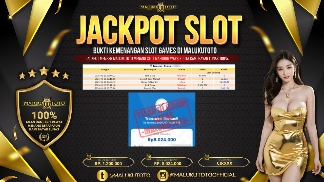 Selamat kepada User id : CIR*** Telah berhasil mendapatkan kemenangan besar pada permainan MAJHONG WAYS kemenangan Sebesar Rp.8.000.000, Setelah mengisi formulir withdraw dengan kurung waktu hanya 3 – 5 menit pihak malukutoto sudah melakukan transfer kepada pemilik Userid dan dana sudah dapat di cairkan oleh pemenang. Bukti pembayaran yang kami berikan merupakan bukti pembayaran yang SAH / VALID yang langung di dapatkan melaui tanda transfer transaksi dari Bank yang di tuju.