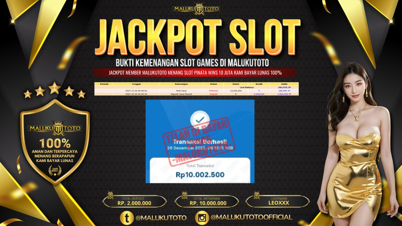 MALUKUTOTO adalah Situs Togel Resmi & Situs slot Online di Indonesia. Dengan menyediakan berbagai macam permainan yang seru dan menarik di MALUKUTOTO, maka anda tidak perlu ragu lagi untuk bergabung dan bermain bersama kami situs judi online terpercaya yang akan membayar berapapun kemenangan anda. Hanya dengan 1 User ID anda sudah dapat memainkan semua permainan mulai dari togel, Live casino sampai Slot online yang pastinya seru dan menyenangkan.