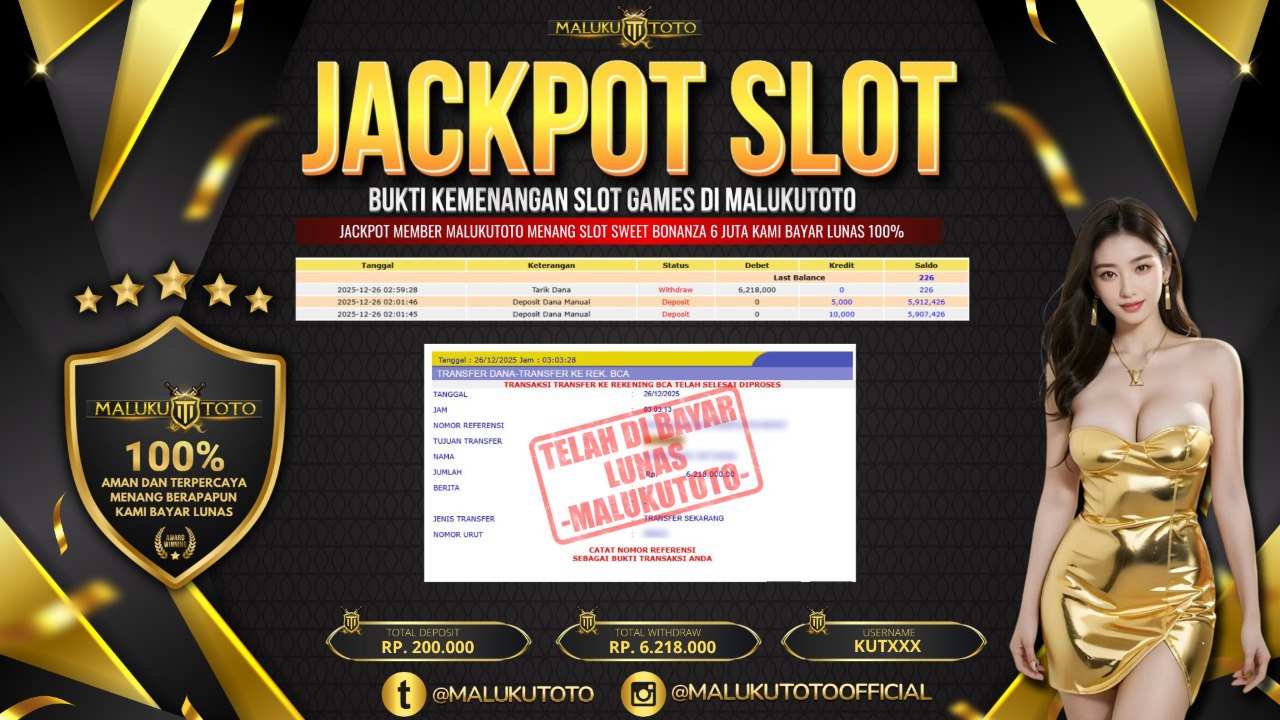 Bandar togel MALUKUTOTO merupakan bandar togel dan slot online yang membayar semua kemenangan member hingga lunas. Setiap pembayaran pada situs kami dilakukan dengan cara transfer ke rekening tujuan yang sudah di daftarkan pada situs togel online kami, Pembayaran hanya dapat di proses jika rekening yang di daftarkan telah valid dan dapat di transfer. Semua kemenangan member yang mendapatkan hadiah jackpot terbesar akan kami posting agar semua pemain dapat melihat bandar situs terpercaya MALUKUTOTO ini membayar semua kemenangan member hingga lunas. Setiap postingan yang kami posting akan kami lakukan sensor pada nomor rekening 4 digit dan nama rekening untuk menjaga privasi dan kerahasiaan member. Postingan Jackpot yang kami posting agar member atau pemain yang belum pernah bermain bisa melihat bandar togel Bukan Kaleng Kaleng Seperti MALUKUTOTO ini, Semua postingan jackpot yang kami posting dapat di lihat data keasliannya melalui nomor reff yang di tunjukan pada bank atau mbanking saat kita melakukan transfer.