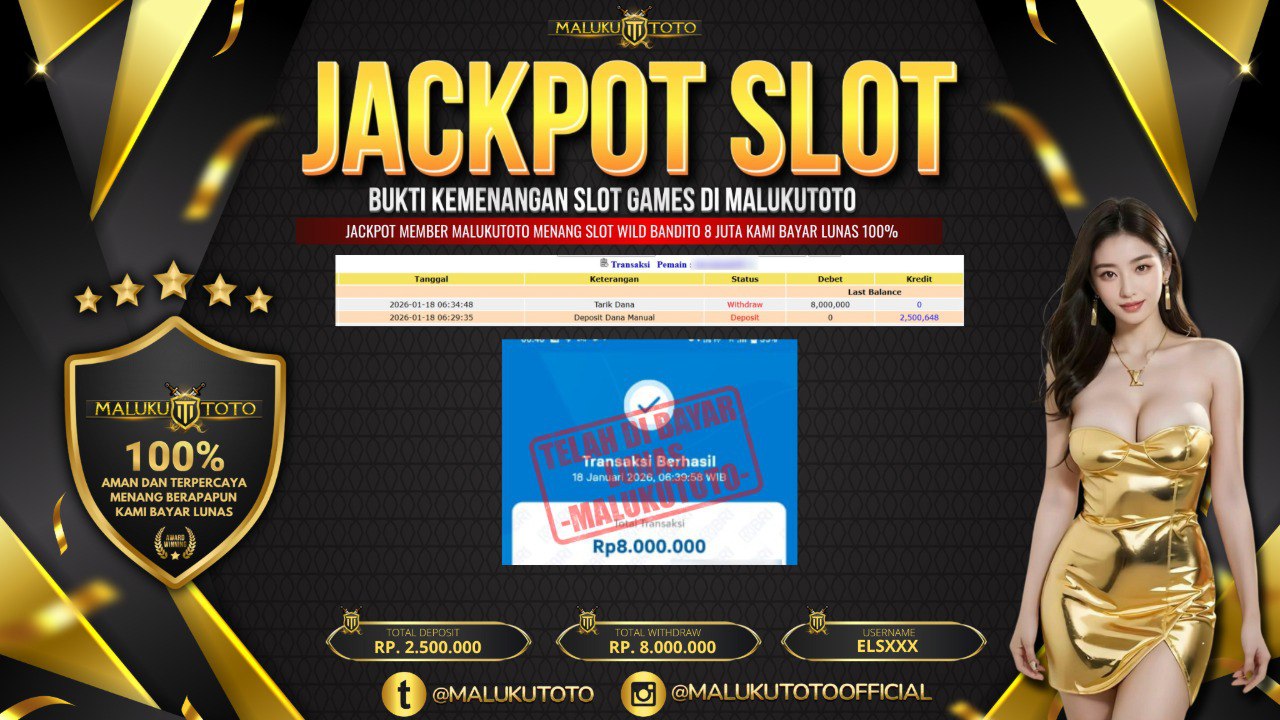 Selamat kepada User id : ELS*** Telah berhasil mendapatkan kemenangan besar pada permainan WILD BAOUNTY kemenangan Sebesar Rp.8.000.000, Setelah mengisi formulir withdraw dengan kurung waktu hanya 3 – 5 menit pihak malukutoto sudah melakukan transfer kepada pemilik Userid dan dana sudah dapat di cairkan oleh pemenang. Bukti pembayaran yang kami berikan merupakan bukti pembayaran yang SAH / VALID yang langung di dapatkan melaui tanda transfer transaksi dari Bank yang di tuju.